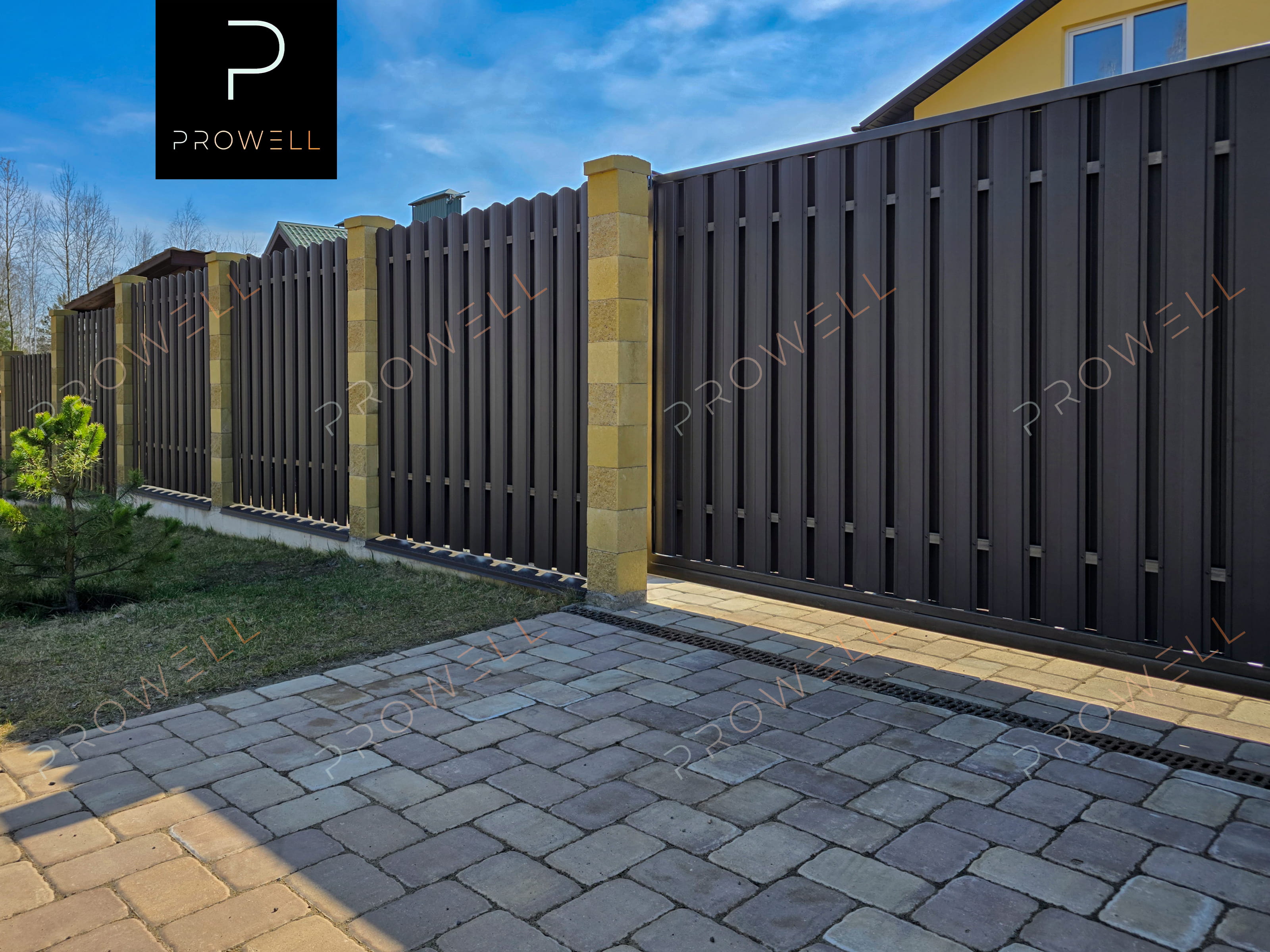 Используемые материалы: Европланка (130 мм), Калитка, Ворота откатные, DR.FERRO Metal Fashion (с металлической стружкой)