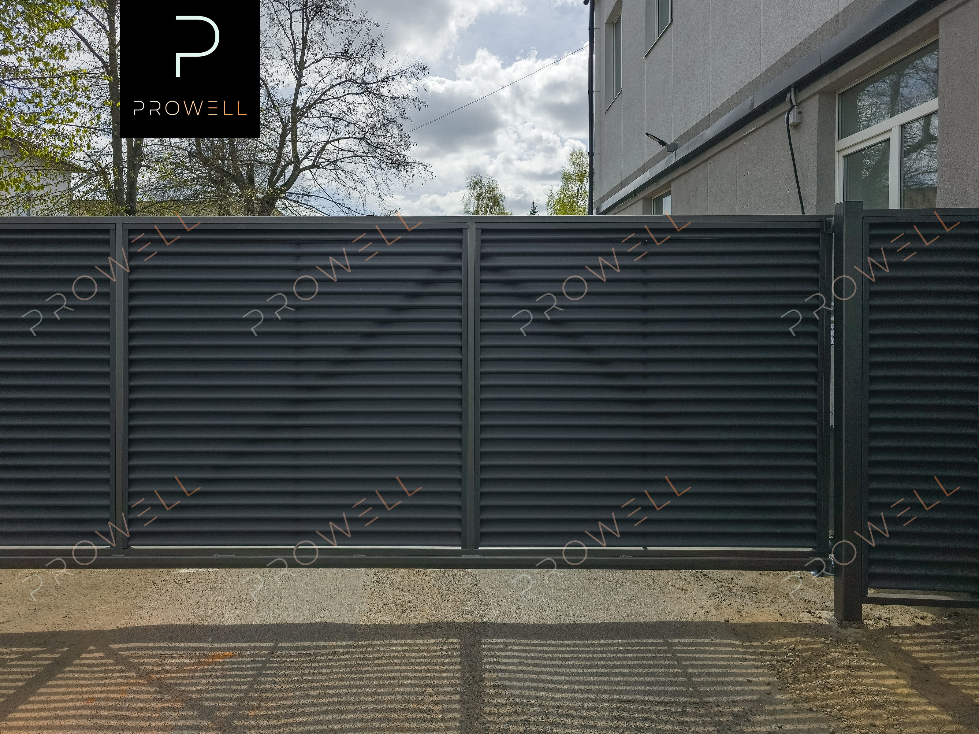 Забор-жалюзи Виола с премиум-покраской DR Ferro и откатными воротами на автоматике Nice RO600